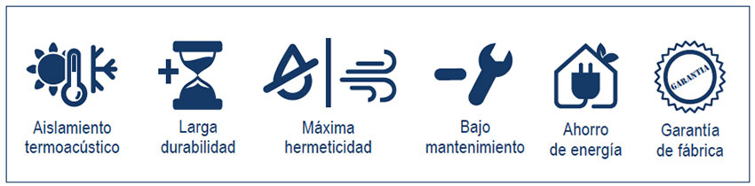 Está diseñado con refuerzos metálicos para garantizar una mayor resistencia y durabilidad. El foliado alemán de alta calidad proporciona una excelente protección contra agentes externos, mientras que el diseño multicámara mejora el aislamiento térmico y acústico, ofreciendo un rendimiento superior en todas las condiciones.